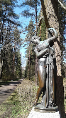 I have a lot of memories associated with Pavlovsk going back to my childhood - from long walks and picnics with my mother to palace and art exhibitions. Pavlovsk is vast and very unusual. It was created in the 18th sanctuary by one of the Russian Emperors - Paul (the official son of Catherine the Great) who himself had views and tastes not fitting with the rest of the royal family. He was actually assassinated in his own bedroom in 1801, but his unusual summer residence and grounds exist up till present day. Where else would you see Roman status placed right under the evergreen trees? Almost every path I took during my last visit here brought out dozens of associations, images and memories going back to my personal family history.